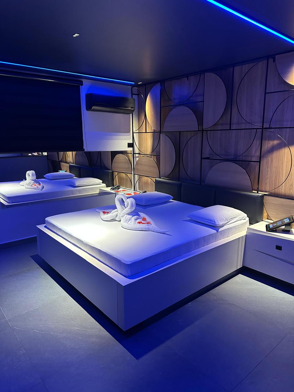 Com uma cama super king, banheira de hidromassagem e iluminação cênica em LED, cada detalhe foi pensado para oferecer uma experiência sensorial única.